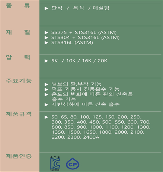 벨로우즈 신축관이음 스펙